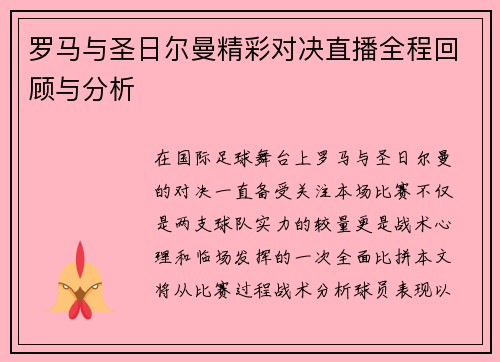 罗马与圣日尔曼精彩对决直播全程回顾与分析
